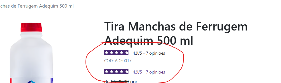 Outra questão: na página do produto estão aparecendo duas vezes as estrelas de avaliações (Opiniões Verificadas) conforme imagem abaixo.
