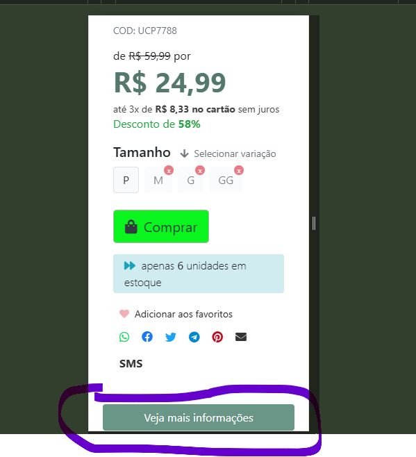 Qual a página que isso está aparecendo? Não é padrão do nosso tema e não encontrei em produtos na sua loja.