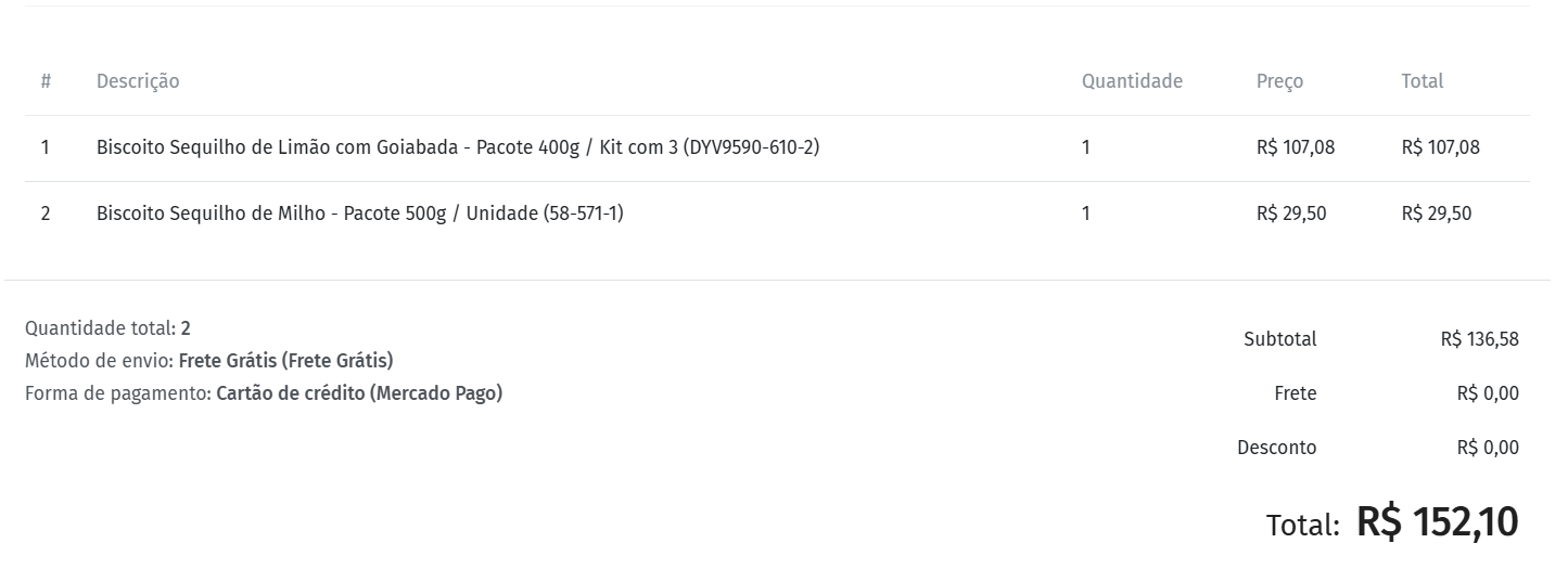 Esse pedido foi parcelado em 4x, por isso o valor “extra” de R$ 15,52.
