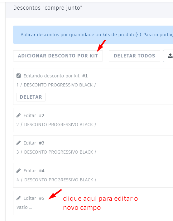 3.2 Clique em Adicionar desconto por kit.