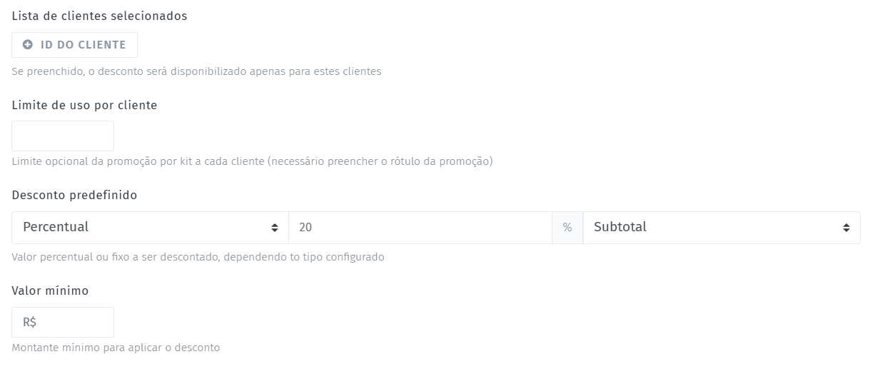 Caso queira, defina um valor mínimo de compra para o desconto ser aplicado.