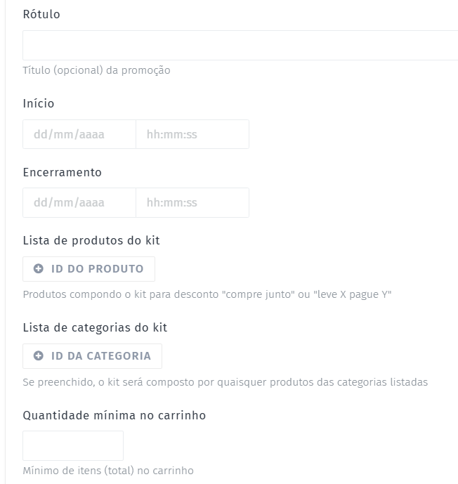 Caso queira aplicar o desconto apenas em produtos específicos, insira aqui os IDs dos produtos.