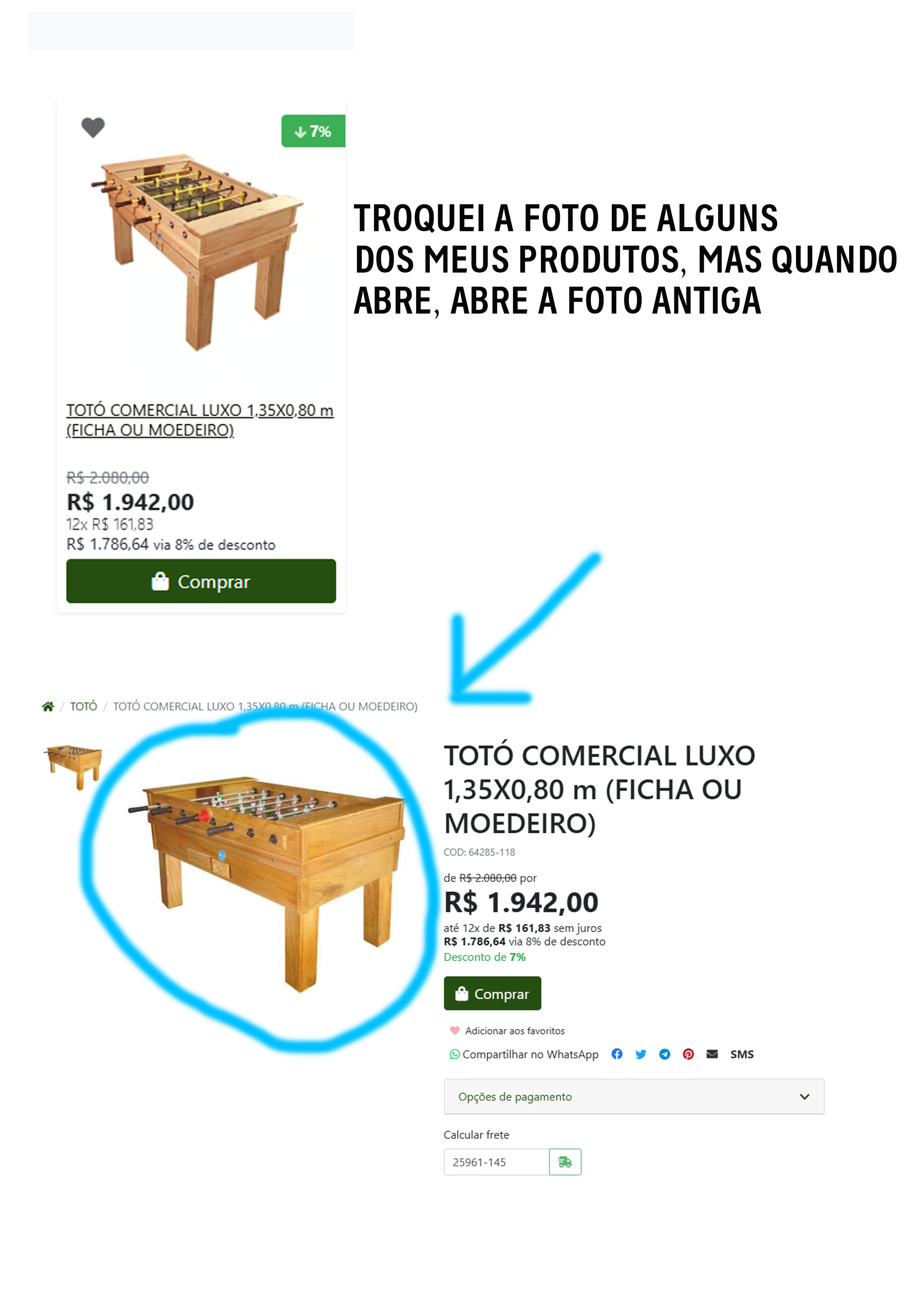 Eu atualizei as fotos de todos os totós do site mas quando clica no produto abre a foto antiga que apaguei.