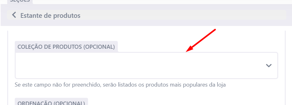 Primeiro passo é criar uma coleção ou categoria com os produtos que você quer mostrar na estante.